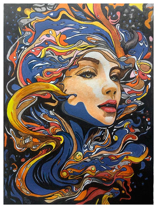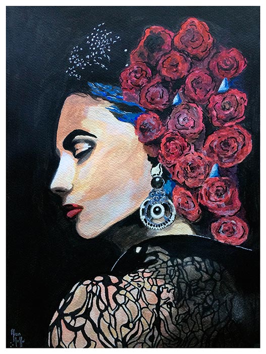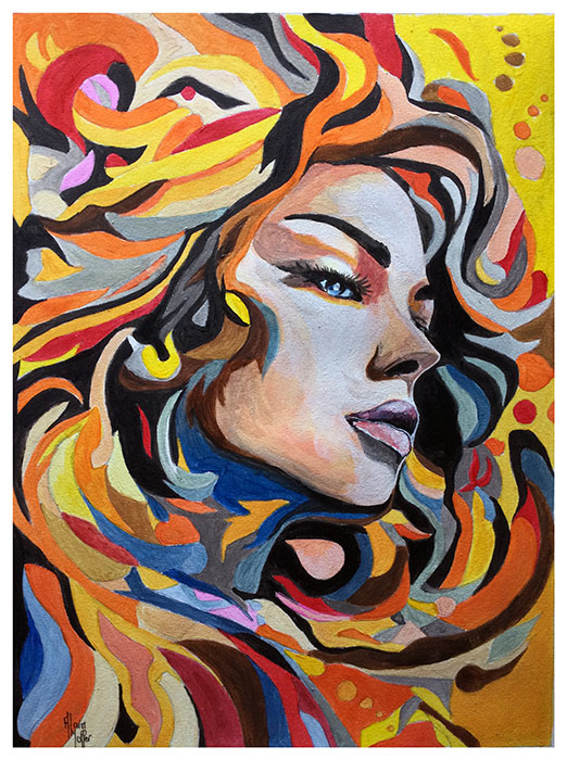 Réalisations à l'acrylique et à l'encre, dimensions : Hauteur 50 cm, Largeur : 40 cm . Vendues avec cadres où non.