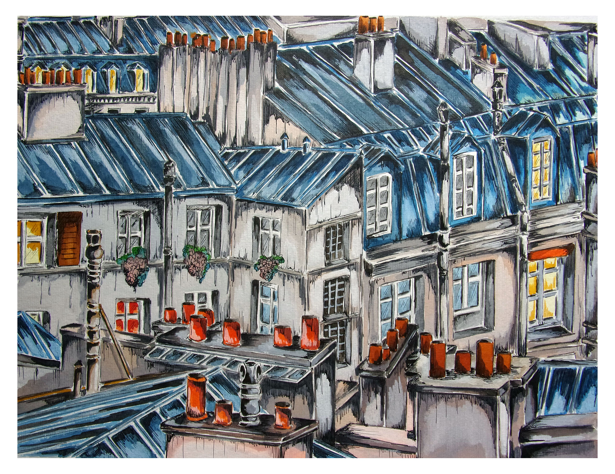 Réalisations avec des encres couleurs. Dimensions : Hauteur 50 cm, Largeur : 40 cm (mode portrait) où Hauteur 40 cm, Largeur : 50 cm (mode paysage). Vendues avec cadres où non.