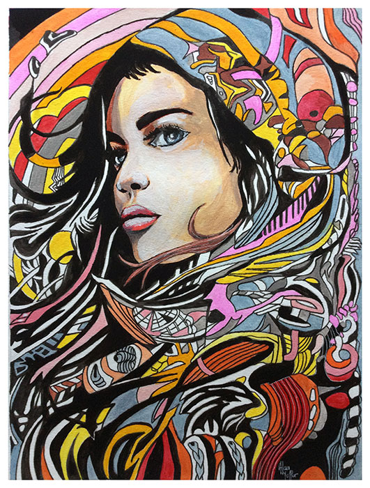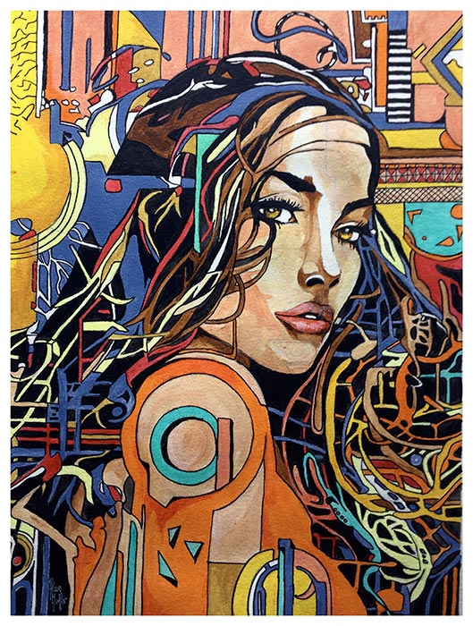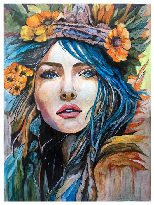 Réalisations à l'acrylique et à l'encre, dimensions : Hauteur 50 cm, Largeur : 40 cm . Vendues avec cadres où non.