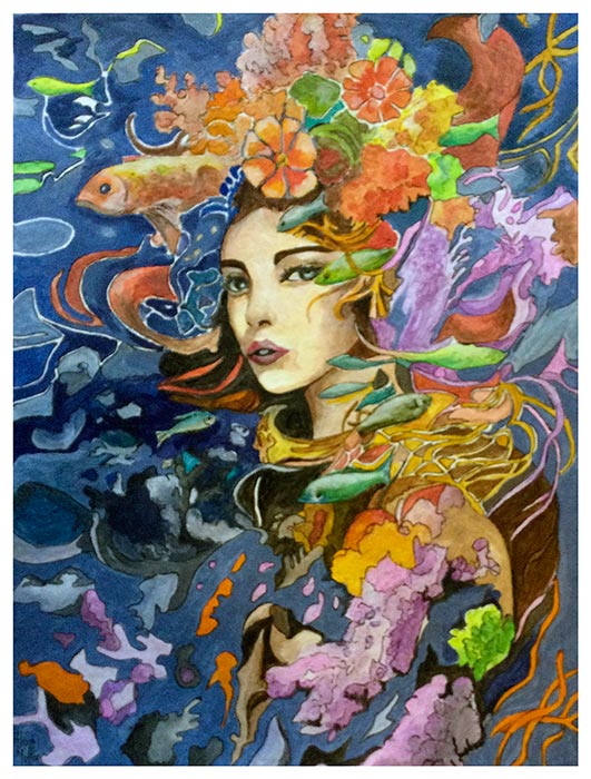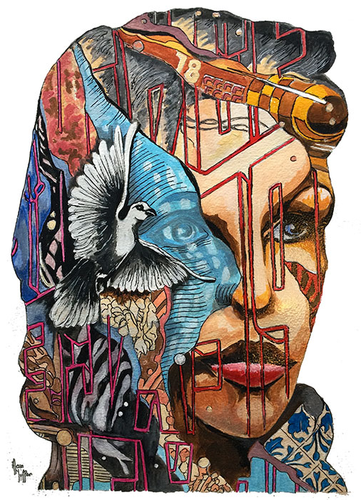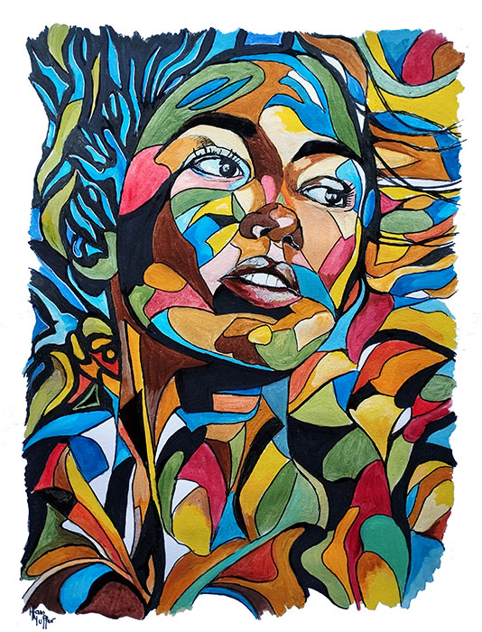 Réalisations à l'acrylique et à l'encre, dimensions : Hauteur : 50 cm, Largeur : 40 cm . Vendues avec cadres où non.